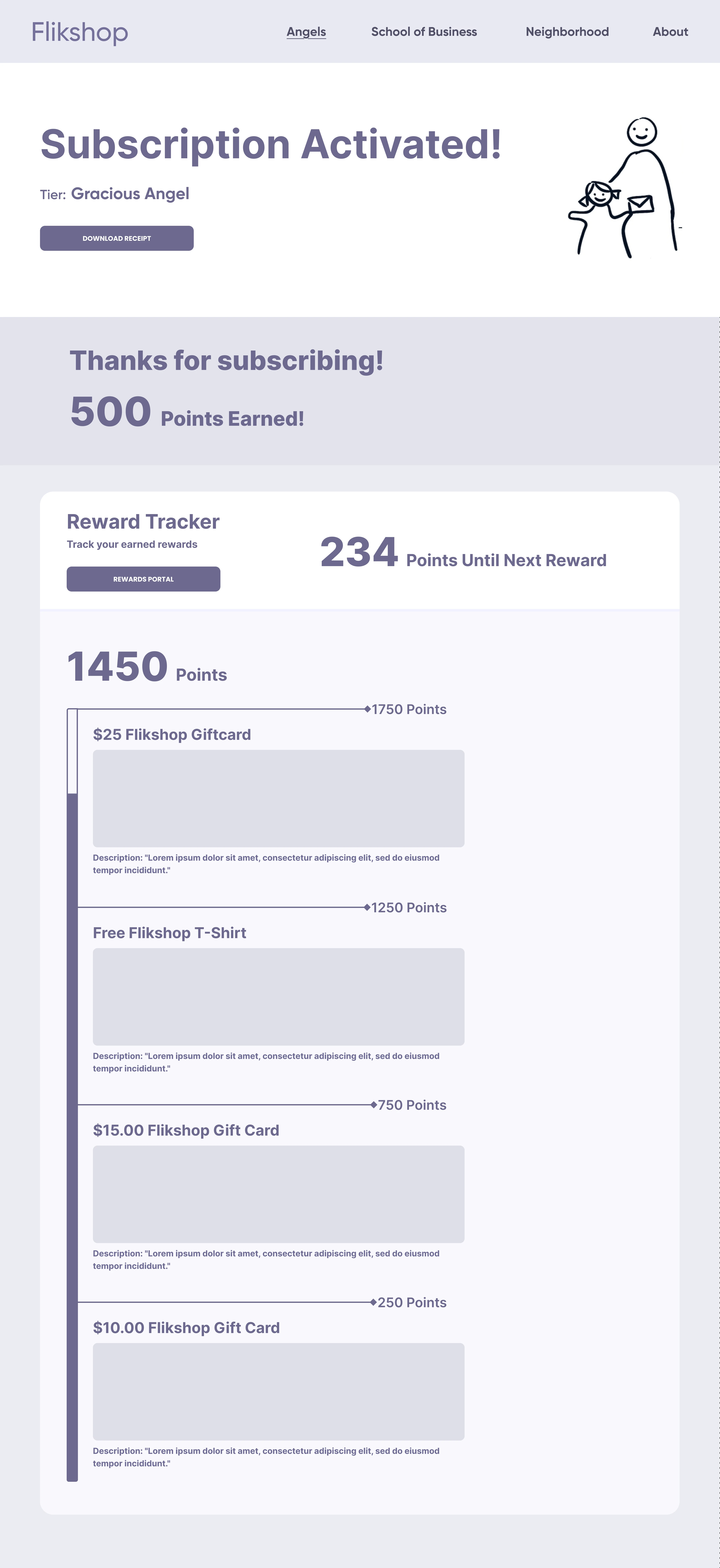 Ideating and designing a donor rewards program for Flikshop Angels to encourage donations and improve donor retention.