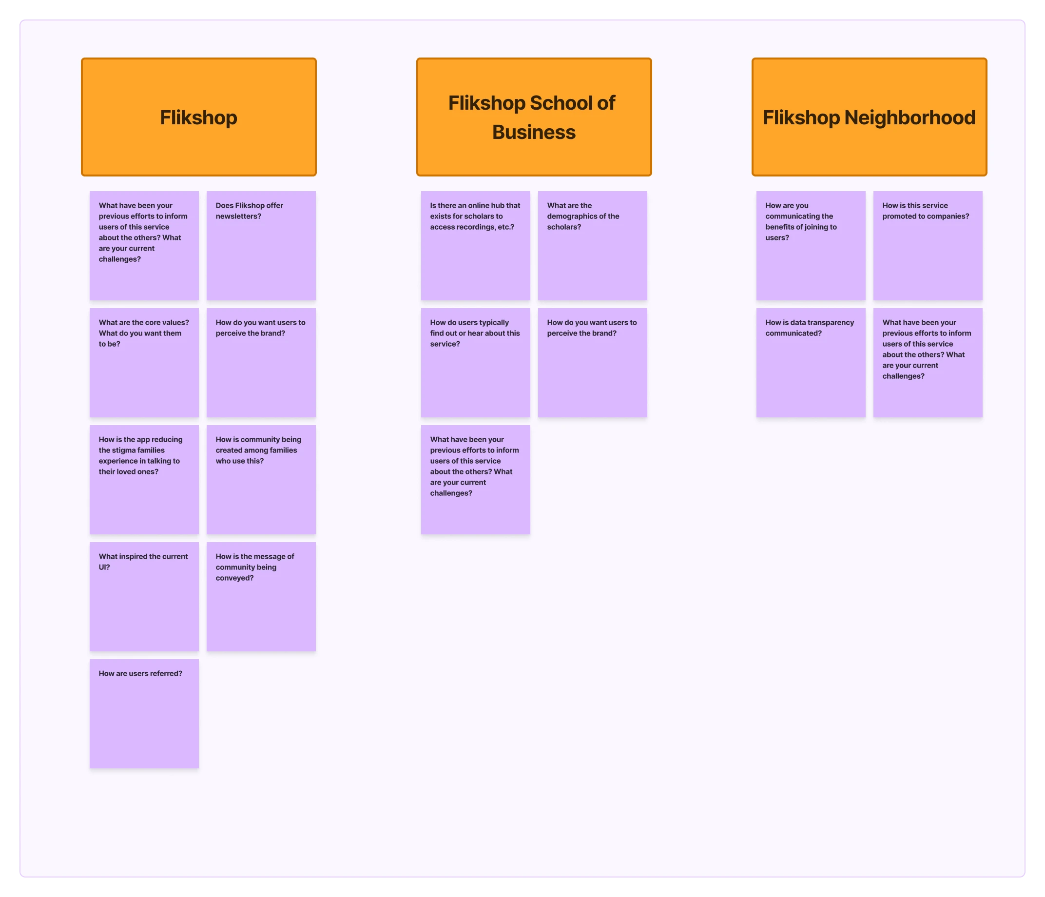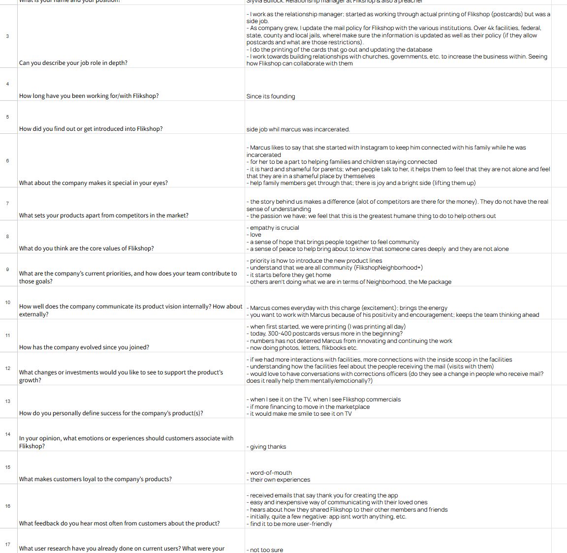 Conduct further interviews with internal Flikshop stakeholders (past & present) to better understand the Flikshop brand and mission