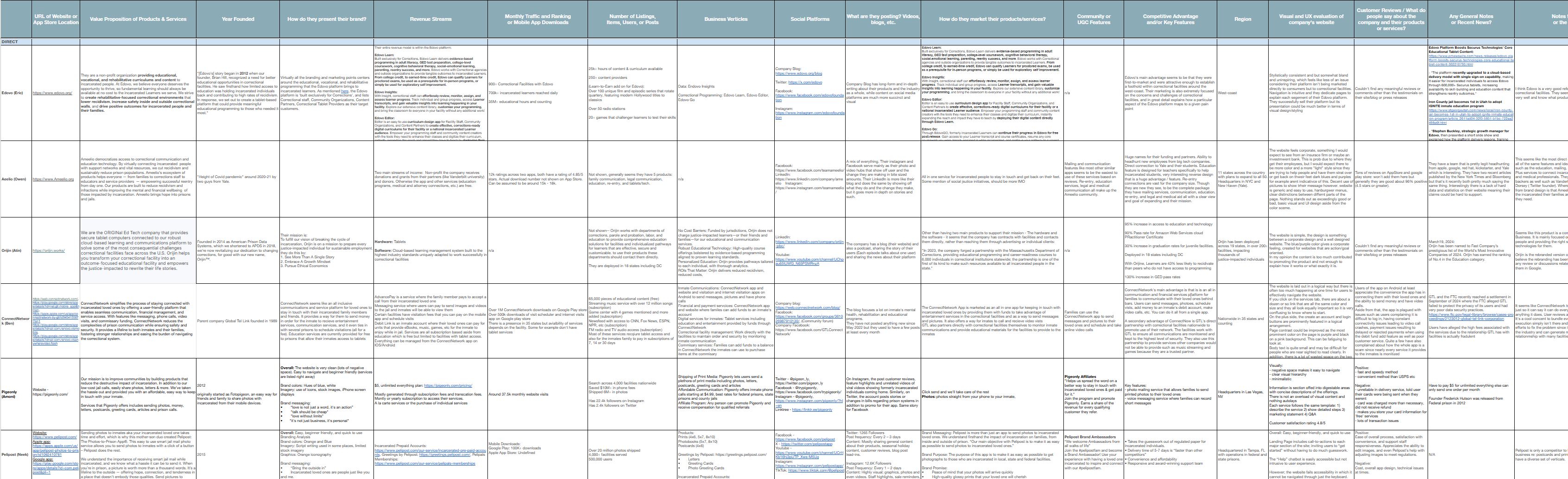 Researching potential market opportunities to expand target demographics beyond incarcerted individuals and their famlies & loved ones.