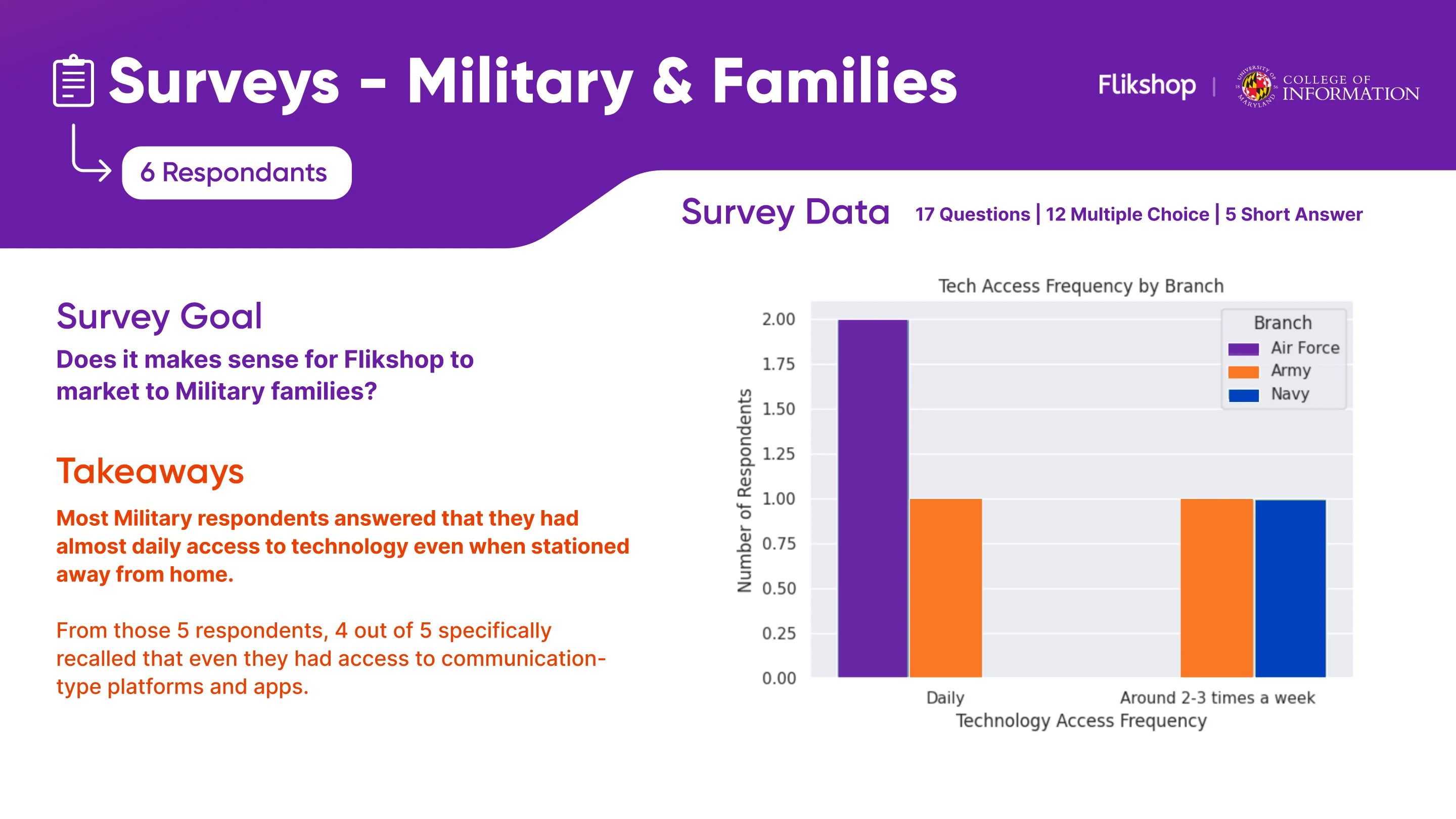 Create and conduct market research surveys for elderly and military demographics to guage their respective growth potential